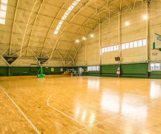 江蘇宿遷運河路學校體育館木地板案例,場館選用歐氏地板學校體育館專用單層龍骨結構運動木地板,體育館總面積98