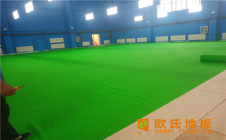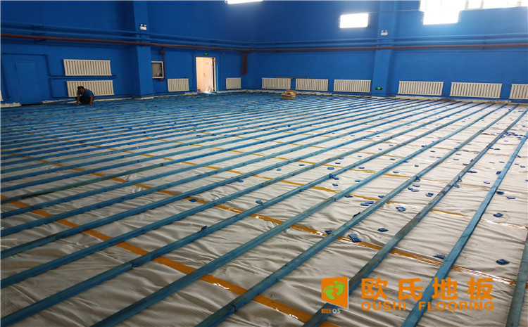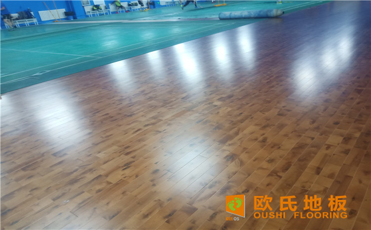 烏魯木齊北京北路東風花苑小區個人羽毛球館木地板項目,項目選用羽毛球館專用單層龍骨結構楓樺木運動地板,場館總鋪設面積679平方米。