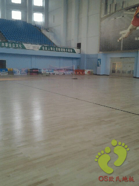 歐氏地板承建內蒙古五原縣體育館地板鋪設,圓滿完工。采用楓木A板,共650㎡。(完工圖一覽)