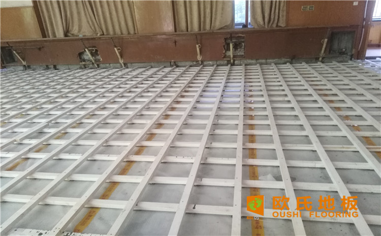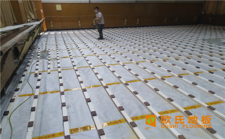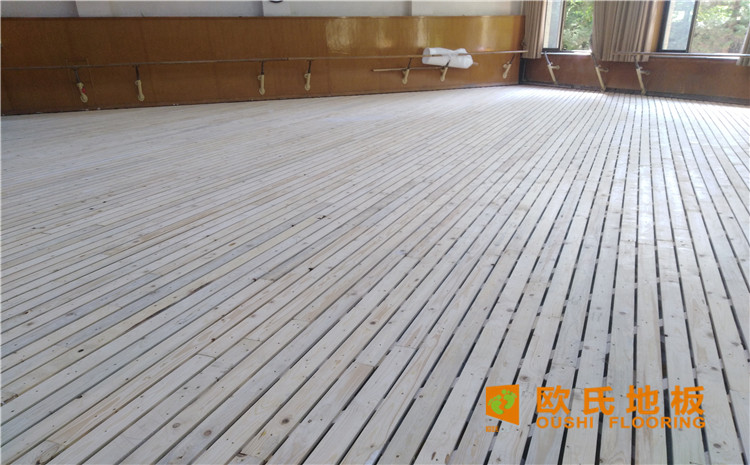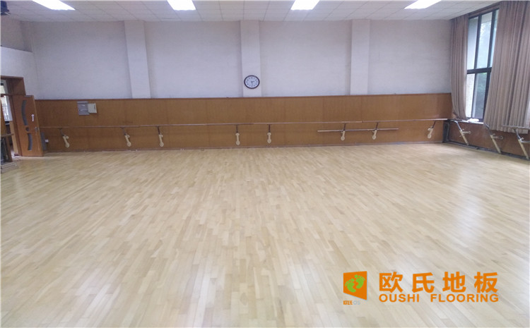 北京舞蹈學(xué)院舞蹈室木地板,選用的是歐氏地板舞蹈室專用雙層龍骨毛板斜鋪結(jié)構(gòu)舞臺(tái)木地板。