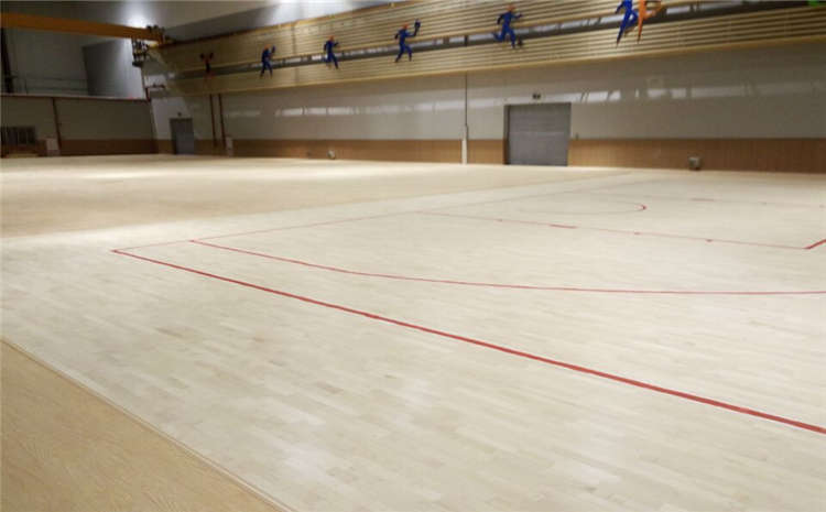 毛地板:優質膠合板不低于12mm厚符合GB/T9846-2015《普通膠合板》標準要求,耐水防腐體育專用毛地板(膠水為酚醛膠),毛地板在加工時應進行防腐、防蟲、防潮處理,甲醛含量應符合GB18580-2017《室內裝飾裝修材料人造板及其制品中甲醛釋放限量》級要求。籃球館木地板要有礦物線紋理,面板光潔平整。我們選擇籃球場館實木運動地板的重要依據就是木地板的光澤度和平整度。對于光澤度,我們的要求不是那么嚴格,畢竟這是原始生長而成的,所以只要紋理清晰,沒有大的色差,而且美觀好看就可以選擇了。