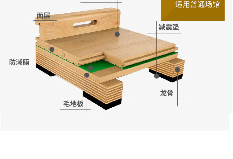 舞臺木地板,它和籃球館木地板、羽毛球館木地板一樣,是體育木地板家族的成員,舞臺地板之所以是用實木制成的,是因為它必須達到各種舞蹈的專業(yè)標準,如反彈性、降震性等,通過舞臺地板的特有功能,大程度降低舞者在訓練表演時所受到的傷害,從而達到佳的發(fā)揮水平。