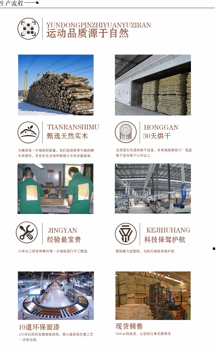 品質是所有客戶關注的問題,歐氏體育地板品牌提供的“歐氏”體育木地板包括各類體育專用地板、運動地板、舞臺木地板等與地板相關的產品。體育地板品牌產品執行國*標準,同時參照德國的體育專用地板的DIN標準,加工質量優于國標。